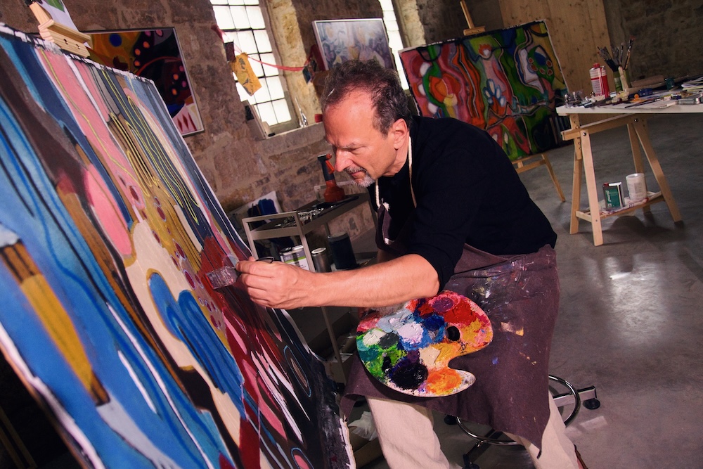 Jochen Ulmer braucht sie wie die Luft zum Atmen: Die Kunst. Hunderte Werke sind bereits im Laufe seines Lebens entstanden. Und der Blick auf ältere Arbeiten offenbart für Ulmer eine deutliche Entwicklung. Frühe Werke erscheinen ihm heute suchend, tastend, vorsichtig. Formen verhandeln ihre Existenz, Farben treten in leisen Dialog. Die aktuellen Arbeiten dagegen sind klarer, riskanter, irreversibler. Linien schneiden, widersprechen, markieren. Während frühe Werke eine sanfte Zeitlosigkeit tragen, zeigen die heutigen Bilder ihre Zeit offen. Übermalungen und Korrekturen sind nicht versteckt, sondern Teil der Aussage. Stille ist nicht mehr Ergebnis von Zurückhaltung, sondern bewusste Entscheidung. „Früher habe ich in das Bild hineingehört“, fasst Ulmer zusammen, „heute traue ich dem Bild zu, für sich zu sprechen.“